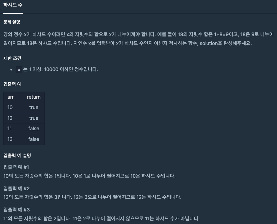 오늘은 히샤드 수 문제를 풀어보았습니다! 날씨가 어제보단 좋네용 ㅎ히