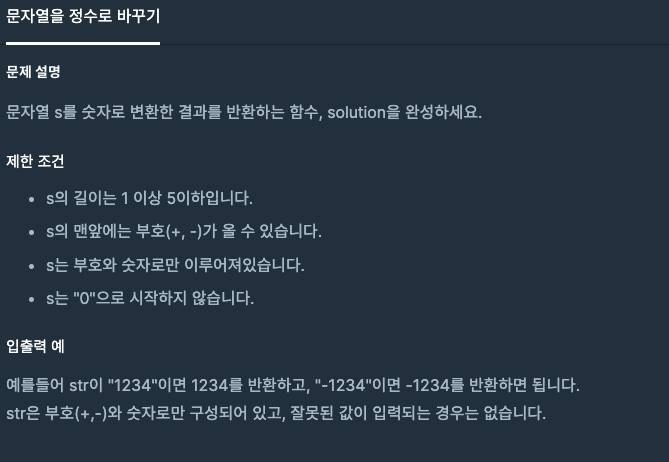이번에는 문자열 정수로 바꾸기 문제를 풀어보겠습니다!