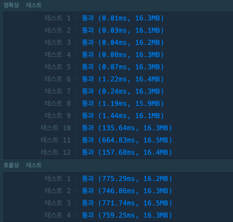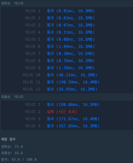 프로그래머스에 있는 다른 코드를 가져와서 돌려봤는데, 다른 풀이는 효율성 테스트2에서 실패하네요??