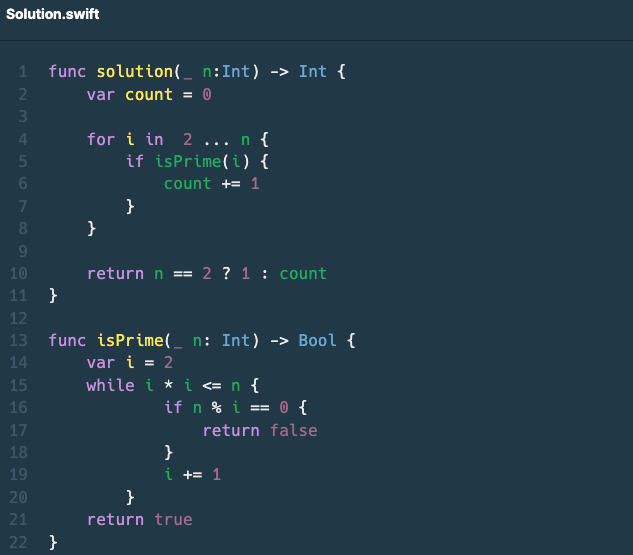 isPrime 함수를 이용해서 Bool 값이 true 일때 count 값을 +1 해줍니다.