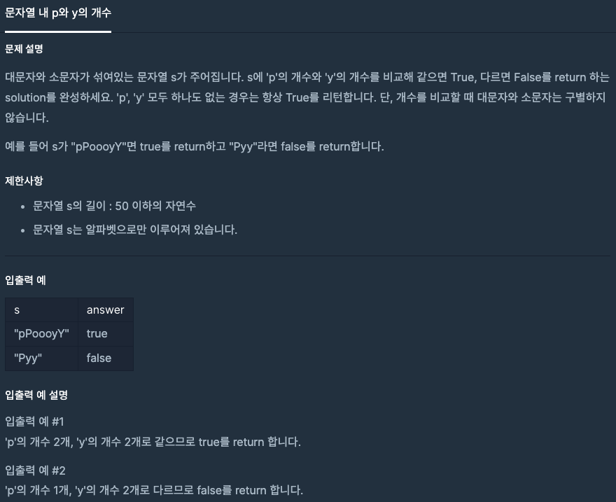 오늘은 문자열 내 p와 y의 개수를 구하는 문제를 풀어보겠습니다 :ㅇ