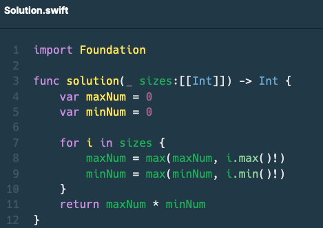 return sorted.map{$0[0]}.max()! * sorted.map{$0[1]}.max()!