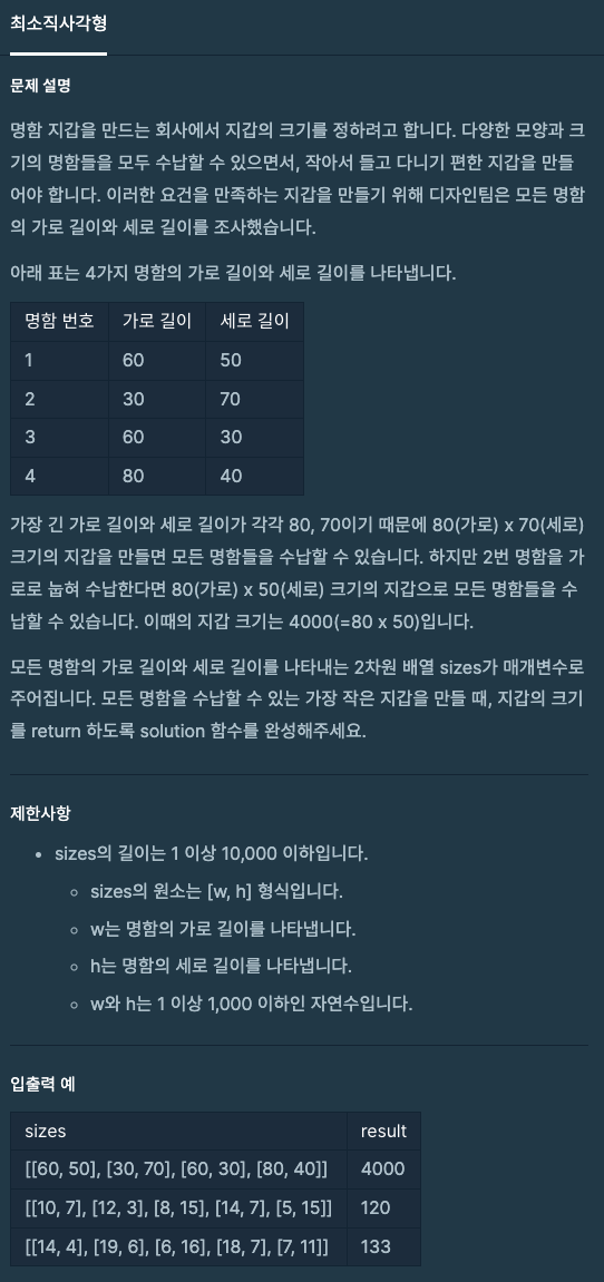 그 후, 2차원 배열인 sorted 값의 첫번째 값 중 큰 값과 두번째 값 중 큰 값을 곱해주고 리턴해줍니다.