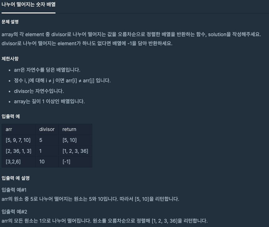 오늘은 나누어 떨어지는 숫자 배열 문제를 풀어보겠습니다!!
