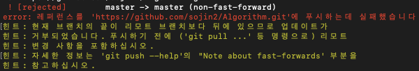 non-fast-forward : 원격 저장소의 master 브랜치가 로컬 저장소의 버전보다 이전 버전이 아닙니다.