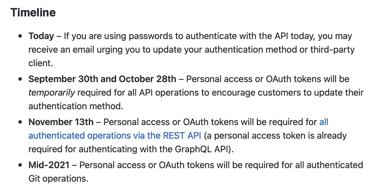 2021년 8월 13일에 암호 인증 지원이 제거되었습니다. 대신 개인 액세스 토큰을 사용하십시오.