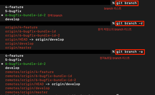 $ git branch -a // 원격 & 로컬