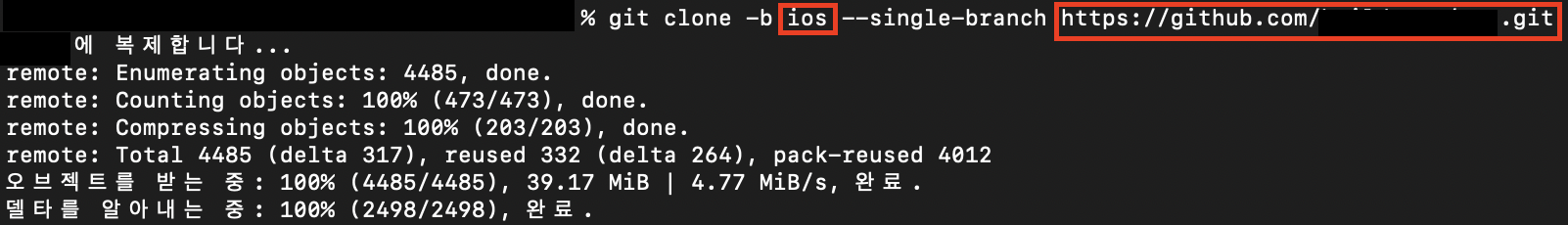 git clone -b {branch_name} --single-branch {저장소 URL}