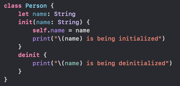 ARC가 Person 인스턴스를 메모리에서 해지하고,