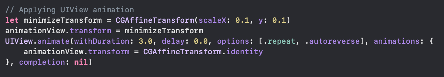transform 메소드를 사용하여 설정하면 애니메이션을 회전, 크기 조정 및 재배치할 수도 있습니다!!