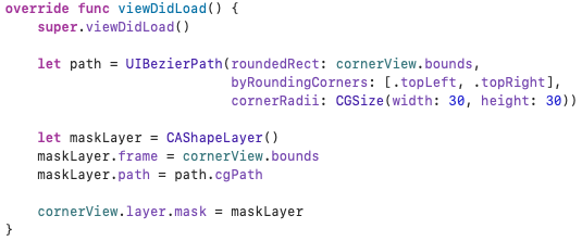 저는 상단부분만 cornerRadius를 적용하고 싶어서