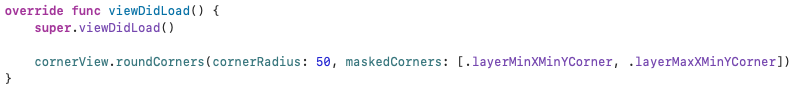 func roundCorners(cornerRadius: CGFloat, maskedCorners: CACornerMask) {