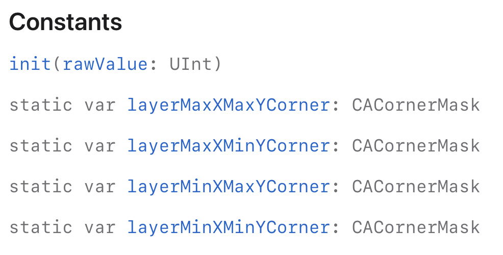 layer.maskedCorners = CACornerMask(arrayLiteral: maskedCorners)