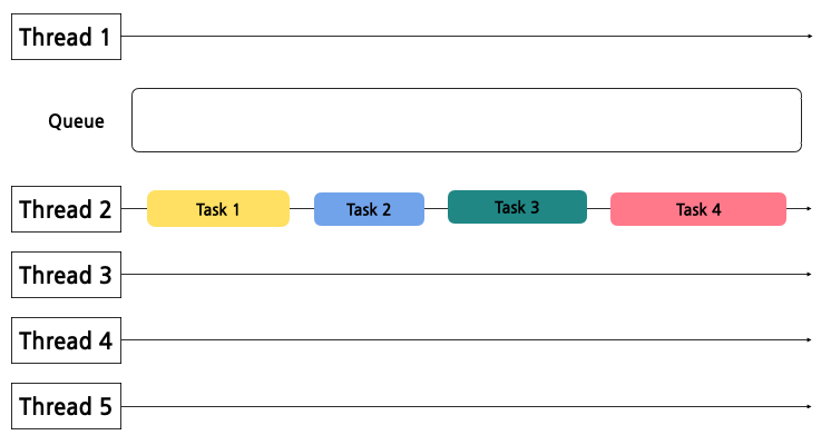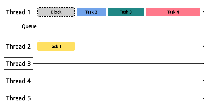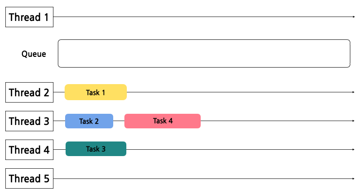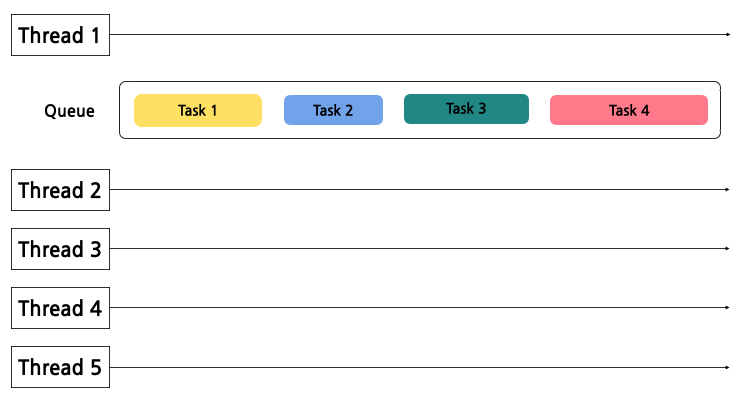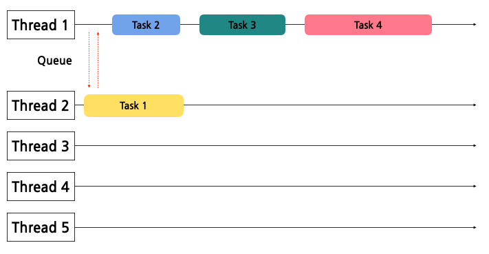좀 더 쉬운 이해를 위해 Queue에 Task들을 넣어놓은 이미지를 가지고 왔습니다.