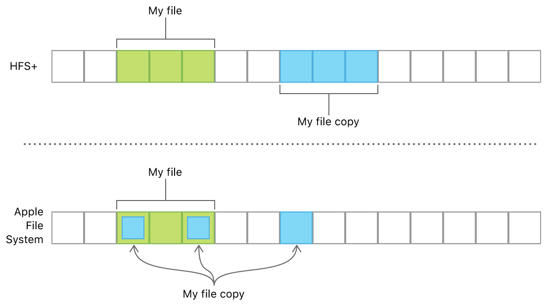 FileManager의 CopyItem(at:to:) 및 copyItem(atPath:toPath:)메서드를 사용하면 APFS 볼륨에서 클론을 자동으로 생성합니다