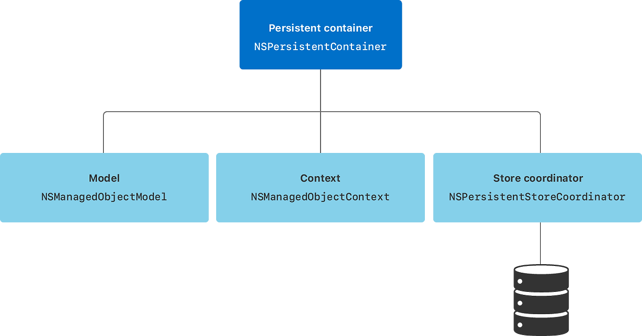 - Core Data 스택의 모든 구성 요소(NSManagedObjectModel, NSPersistentStoreCoordinator, NSManagedObjectContext)를 한 번에 설정해주는 편리한 래퍼
