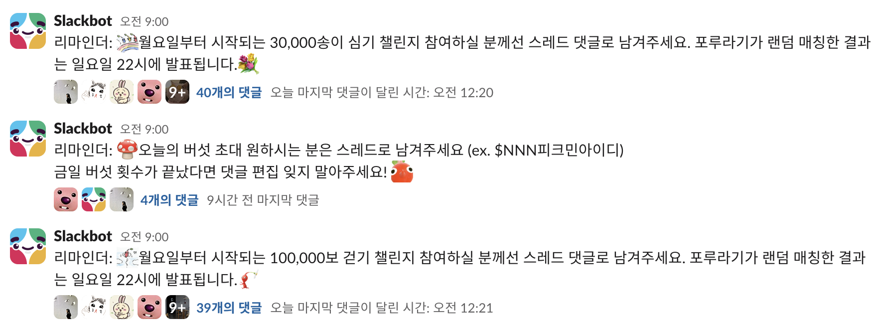 또봇을 이용해서 글 제출 내역을 받을 수 있어서 받아보았는데요!