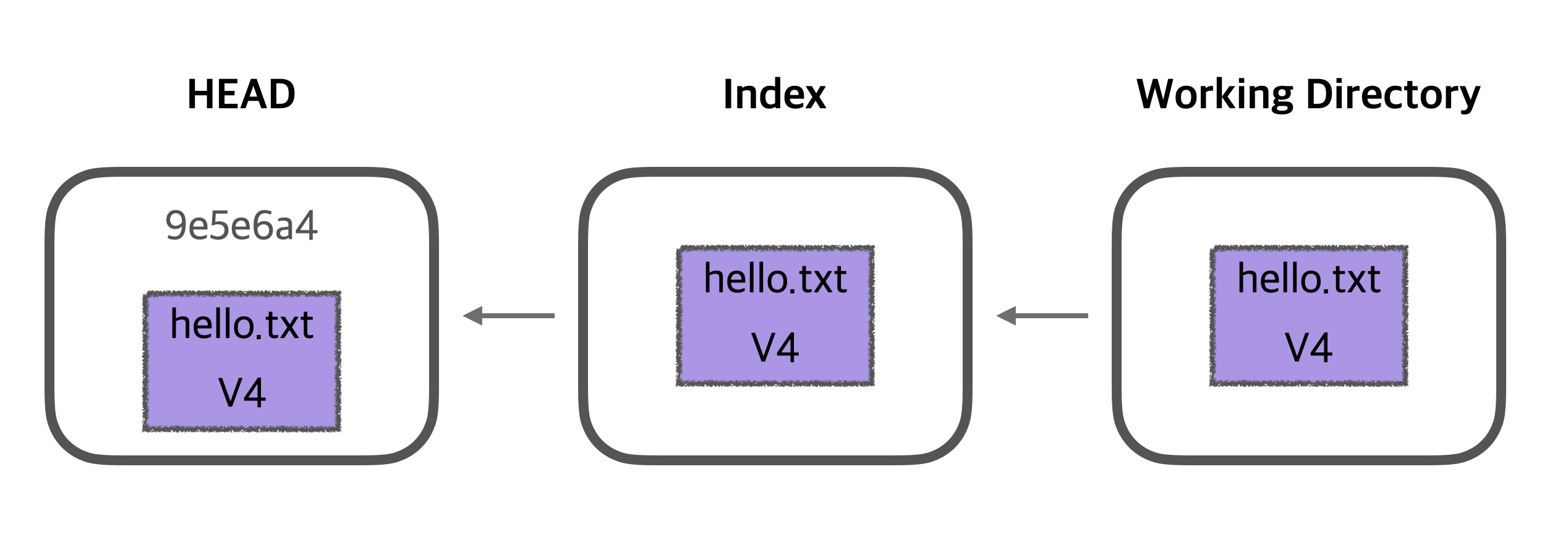 자, 그럼 --hard 명령어를 실행했을때 HEAD/ Index/ Working Dirextory는 어떤 상태일까요?!