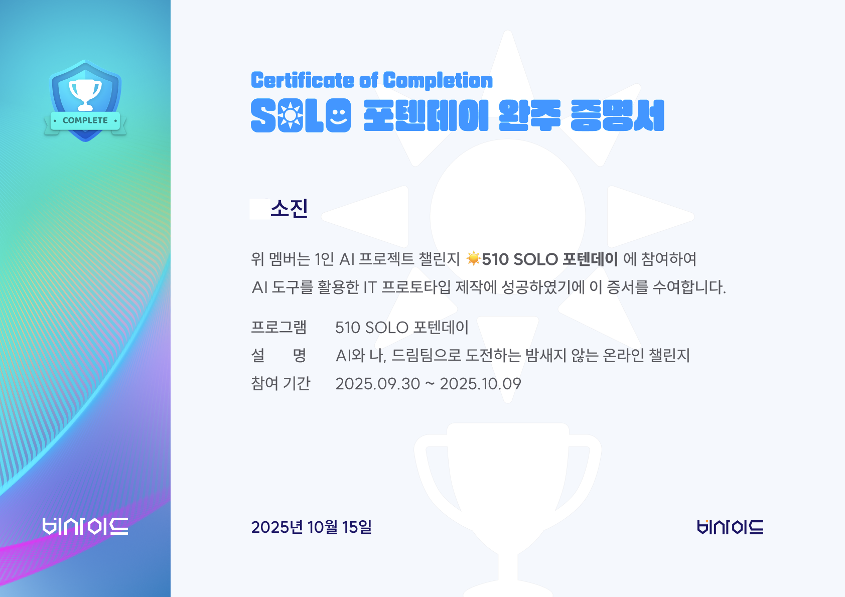 저의 비사이드 참여 목적은 AI를 좀 더 잘 활용하기 위함이었습니다.
