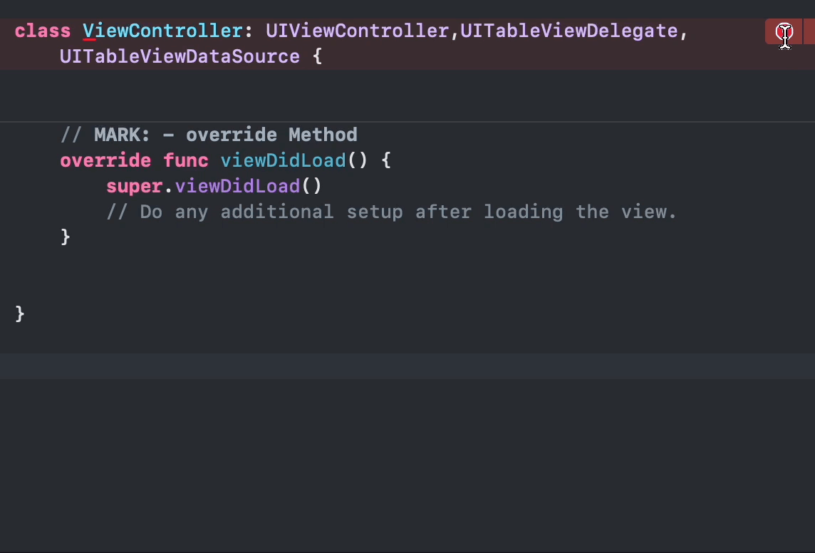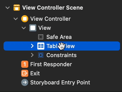 - TableView의 delegate, datasource기 ViewController 임의 지정