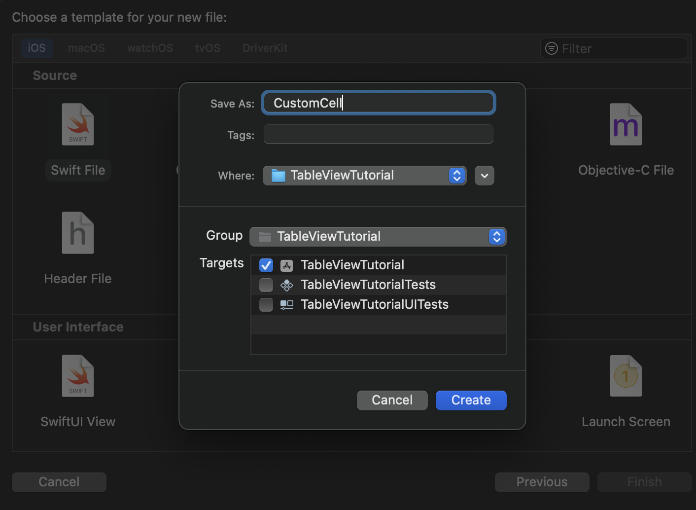 Swift File로 선택해주고 Create 해줍니다.