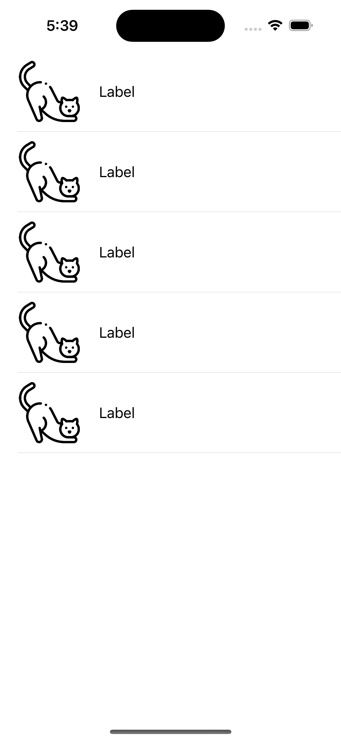위 코드는 한개의 section 당 cell이 5개가 출력됩니다.