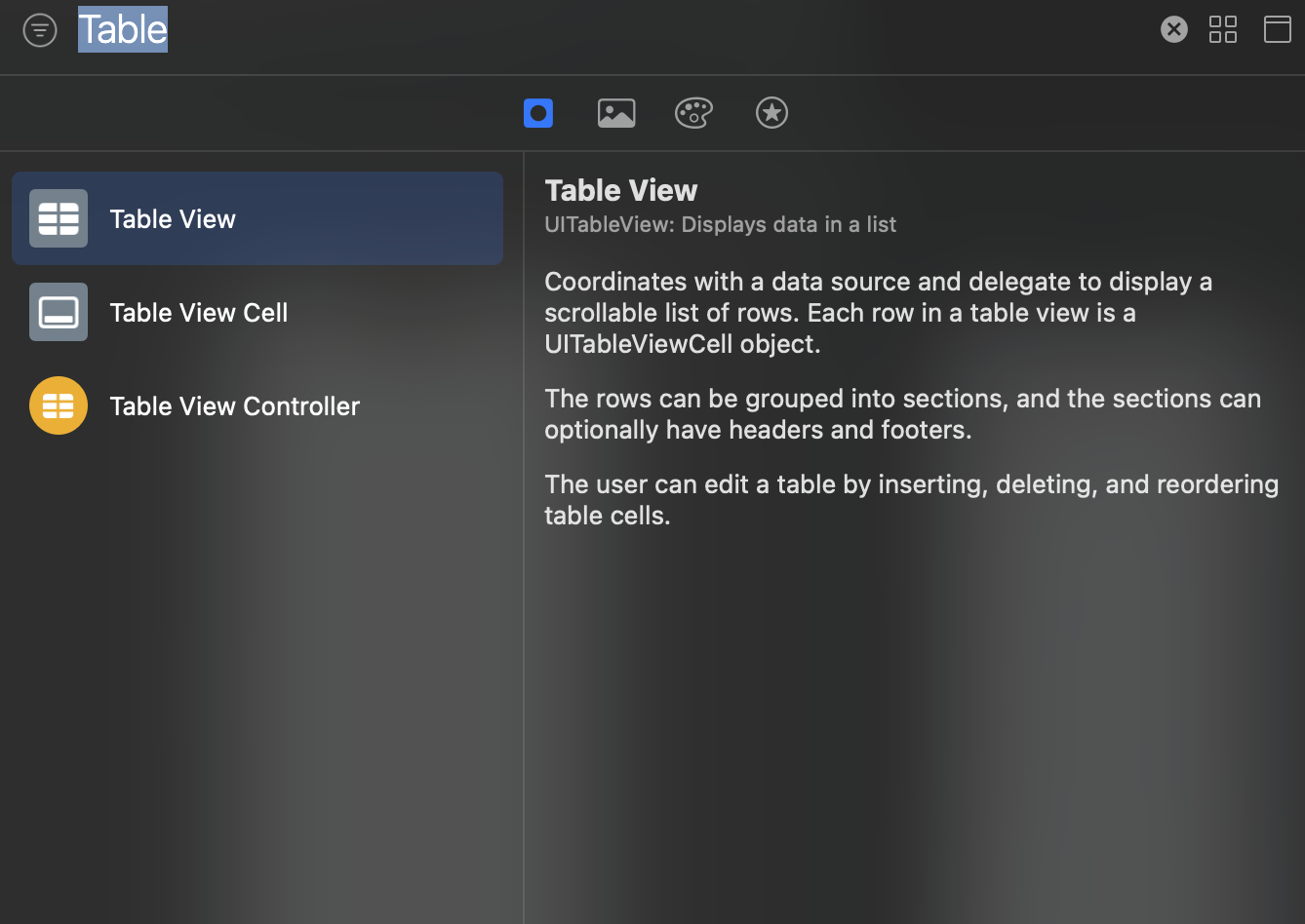UITableViewController에 들어가보면 아래이미지 같이 구성되어있습니다