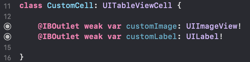 아까 만들어준 CustomCell.swift 파일을 Cell에 적용해주겠습니다