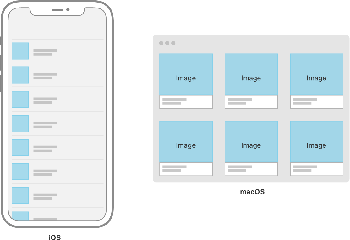 위에 설명한 것과같이 더 큰 장치에 표시하기위해 사용되므로 아이패드나 맥북 같은 큰 화면에서 Grid 형태가 더 잘 맞을 수 있습니다.