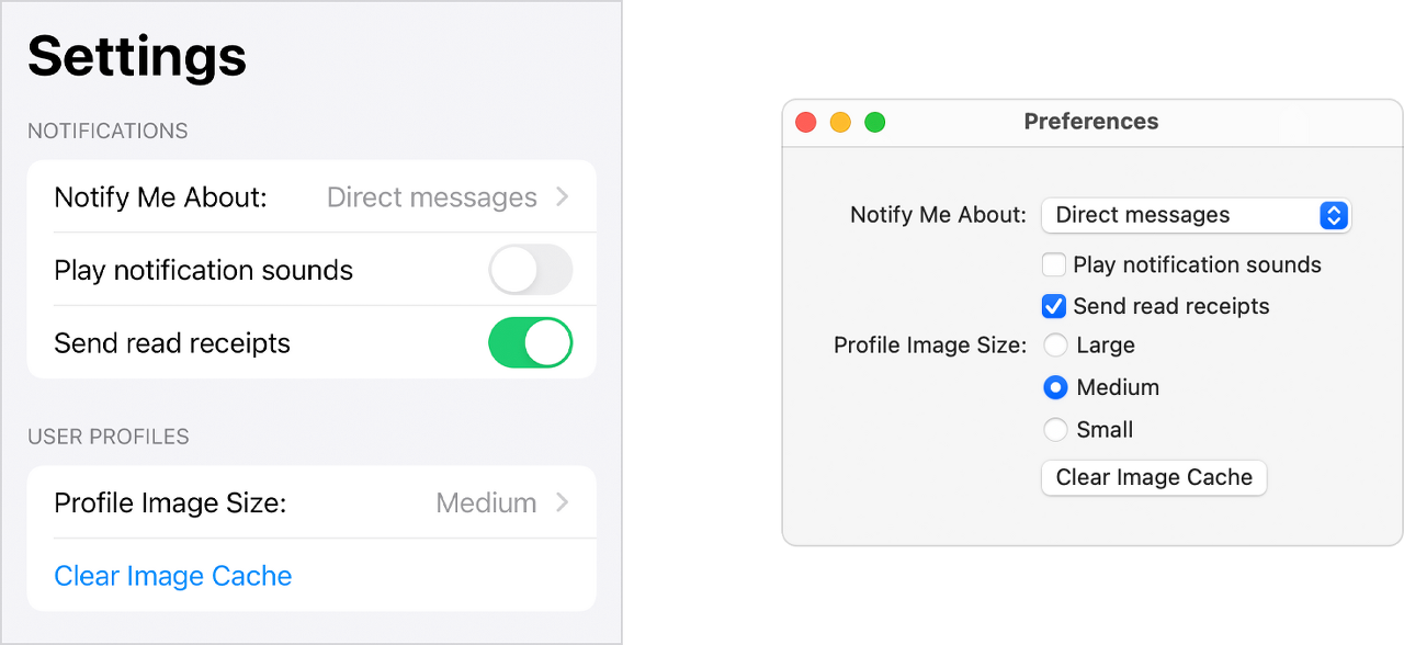 위 이미지처럼 맥 OS에서는 체크박스, 아이폰에서는 switch방식을 사용합니다.