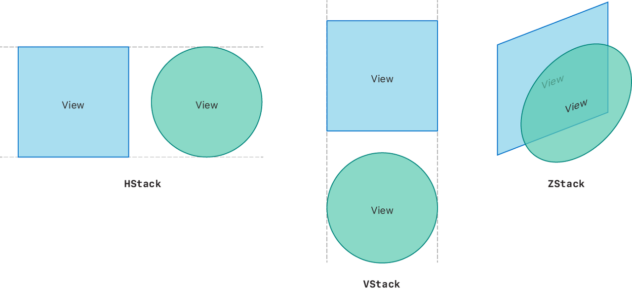 SwiftUI에서 사용할 수 있는 가장 기본적인 layout Container이며 HStack, VStack, ZStack이 있습니다.
