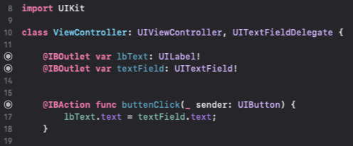 먼저 아래와 같이 Outlet 변수를 만들고, @IBAction 함수를 만들어 줍니다.
