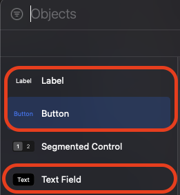 우선 라벨, 버튼, 텍스트 필드를 아래와 같이 메인 스토리 보드에 배치합니다!