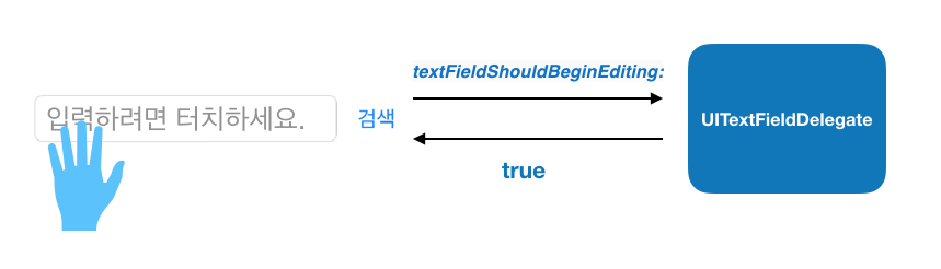 해당 객체가 터치 되었을 때 델리게이트가 호출되어 위임받는 일을 하게 되는 것 입니다.