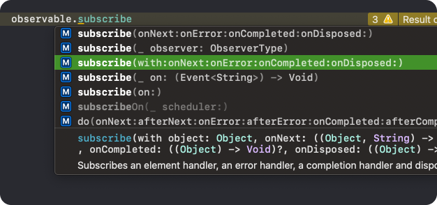 Observable을 구독하게되면 위 이미지처럼 자동 완성이되는데,