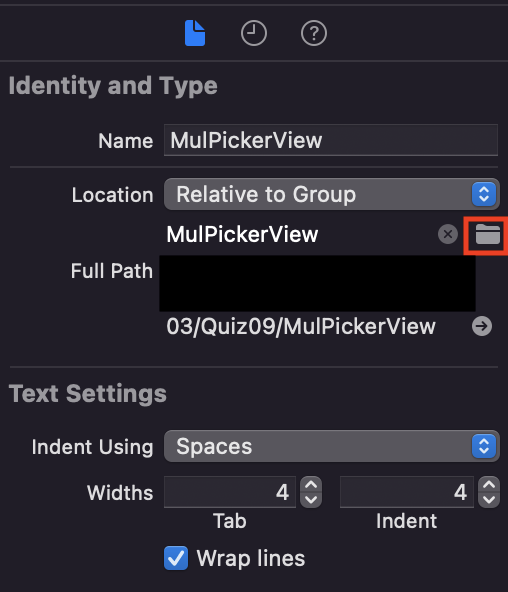 7. 클릭 된 상태에서 우측 File inspector에서 아래 표시해 놓은 파일모양을 눌러줍니다.