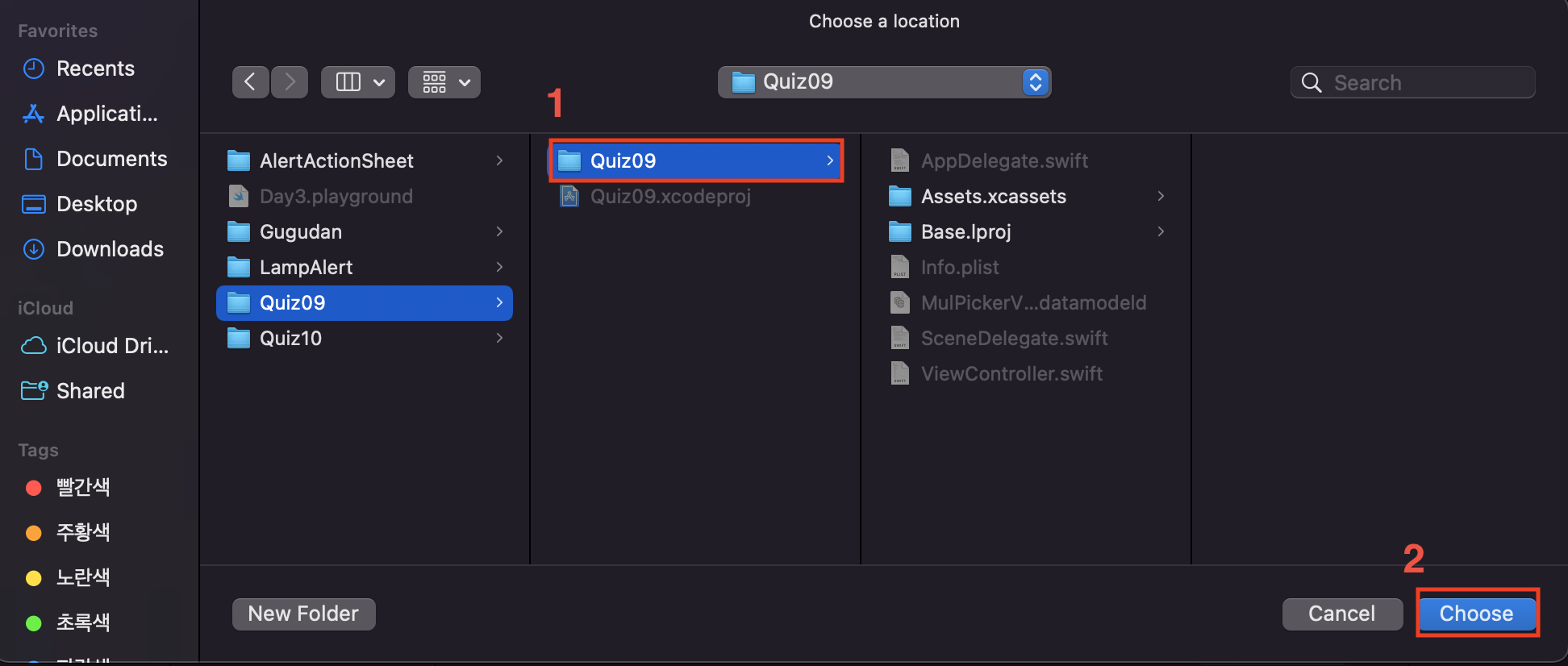 8. 최상단 파일 말고 그 다음 폴더를 지정하고 Choose를 눌러주세요.