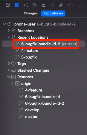 좌측 두번째 아이콘을 누르면 아래와 같이 repositories와 branch들이 나옵니다.