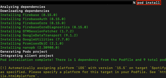 그 후에 pod install을 해주면 끝!!! 저기 complete라고 되어있죠?ㅎㅎ