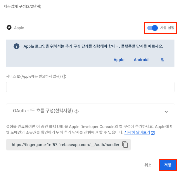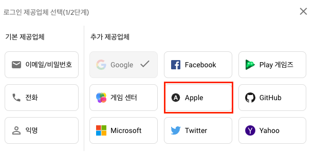 Apple 로그인을 구현해야하니까 Apple을 눌러줍니다!