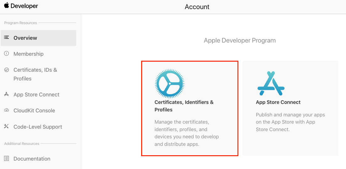 Certificates, Identifiers & Profiles 를 클릭해줍니다.