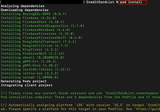 Firebase Database를 사용하려면 Podfile에 아래와 같은 cocoapod을 추가해주어야합니다.