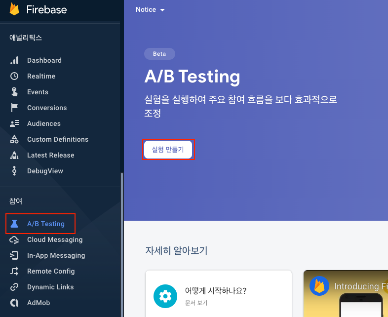 A/B Testing은 상용 App에서 다수의 선택지가 있을때 사용자의 참여율이 더 높은 선택지를 알려주는 Firebase 기능입니다.