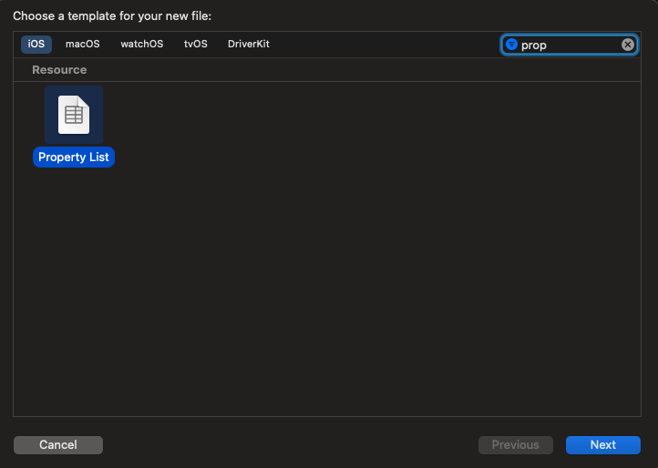 Property List 형태의 새로운 파일을 생성하여 설정해줍니다.