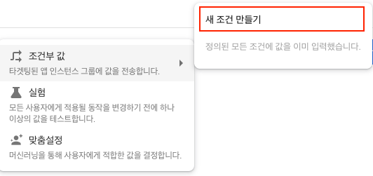 조건부 값에서 새 조건 만들기를 눌러줍니다.