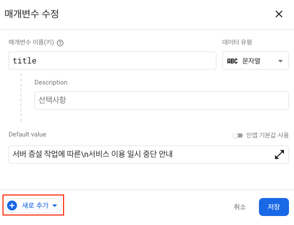 새로 추가를 누르면 아래와 같이 나옵니다.