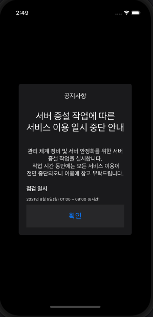 평소에 App을 사용하시는 분들은 아래와 같은 서버 작업 공지 혹은 이벤트 팝업창을 한번쯤은 보셨을꺼에요 :D
