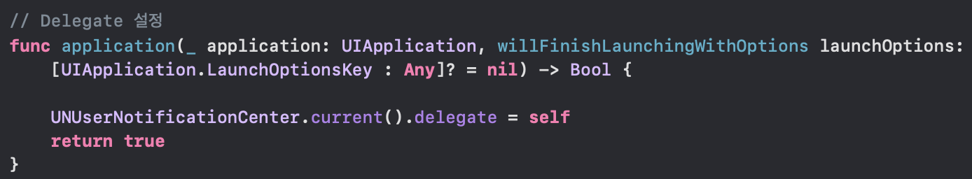 권한 설정과 알림의 Display 형태를 설정해주는 Delegate까지 설정해줍니다.