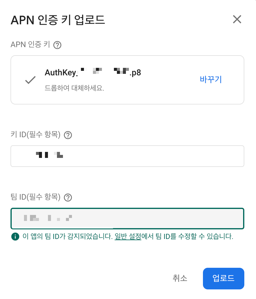 이제 Firebase에서 위 토큰을 등록해주면 됩니다