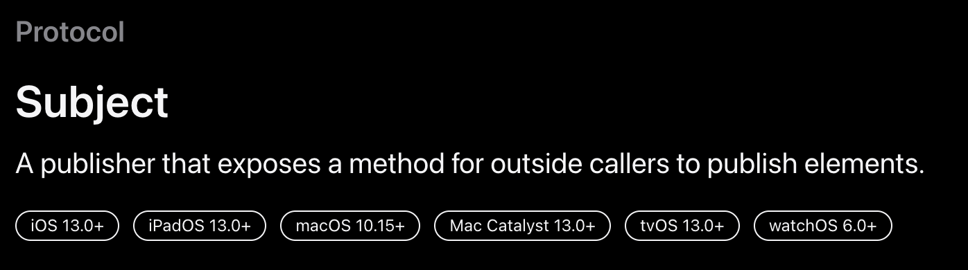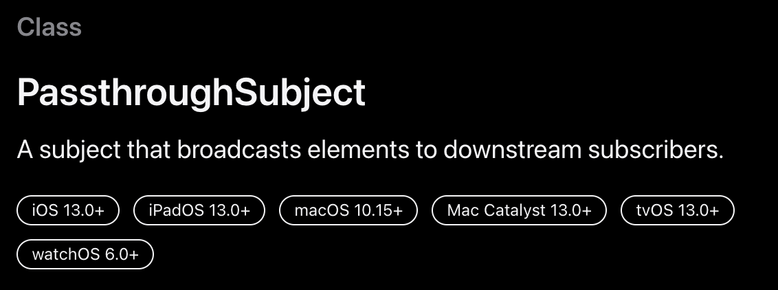 CurrentValueSubject와 달리 PassthroughSubject에는 가장 최근에 publish element의 초기 값이나 buffer가 없습니다.